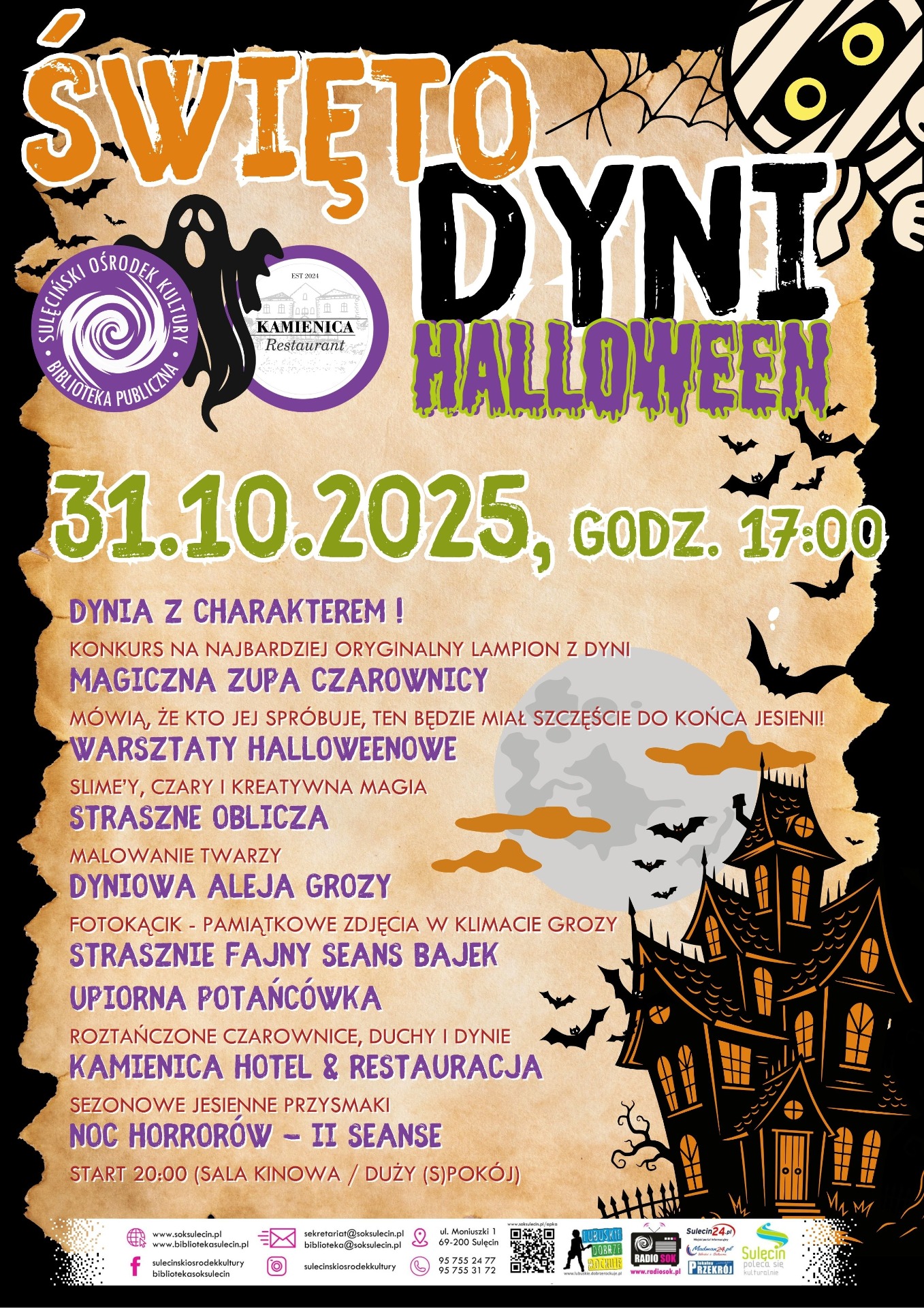 Jesień w Sulęcinie znów nabierze czarodziejskich barw! Już 31 października o godz. 17:00 w Sali Widowiskowej SOK odbędzie się wyjątkowe Święto Dyni - Halloween 2025.