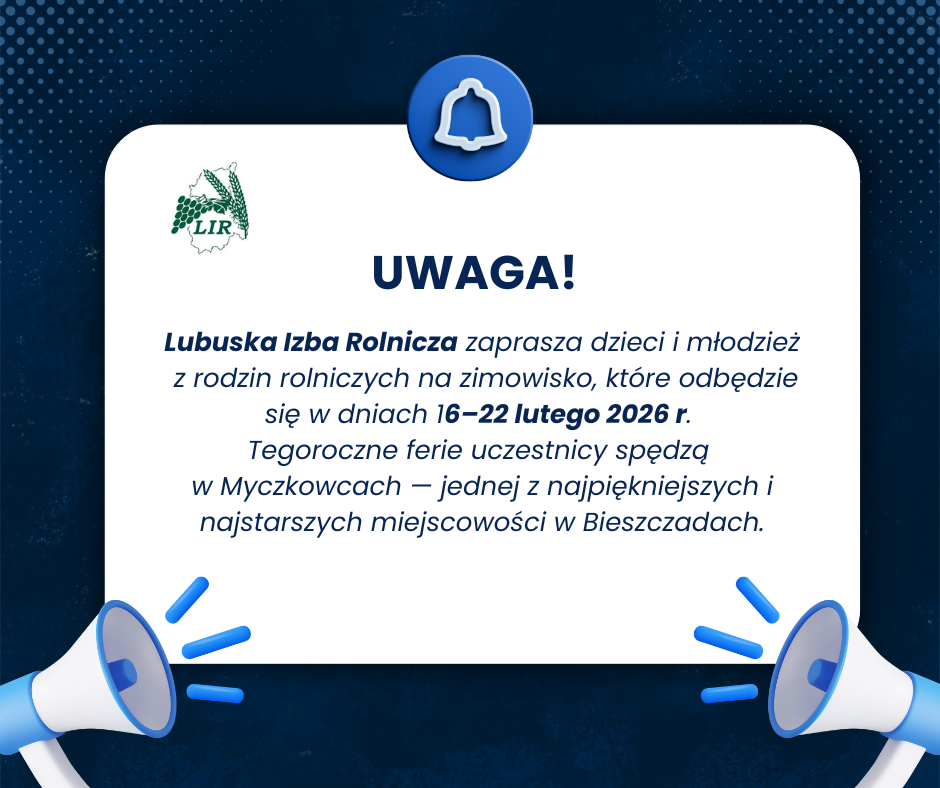 Więcej informacji znajdą Państwo na stronie internetowej Lubuskiej Izby Rolniczej >>> https://lir.agro.pl/zimowisko-2026/