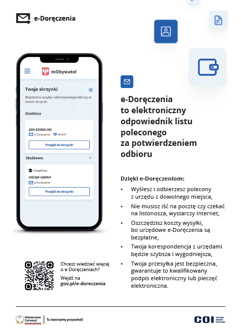 Zachęcamy mieszkańców i przedsiębiorców do zapoznania się z systemem e-Doręczeń i korzystania z tej formy kontaktu z Urzędem.